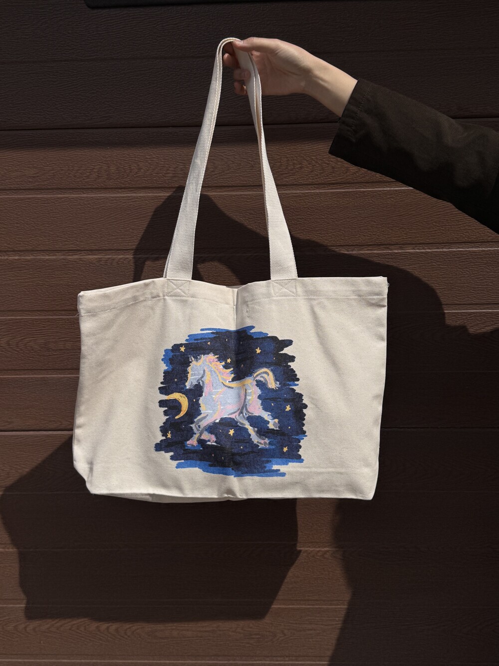 뒷면에는 푸른 배경 위에 자유로운 말 그래픽이 담겨 있습니다.