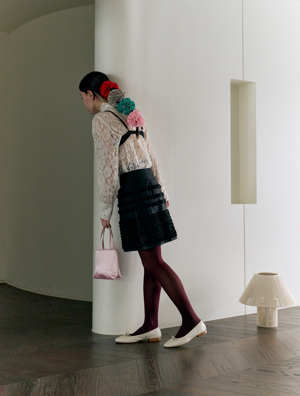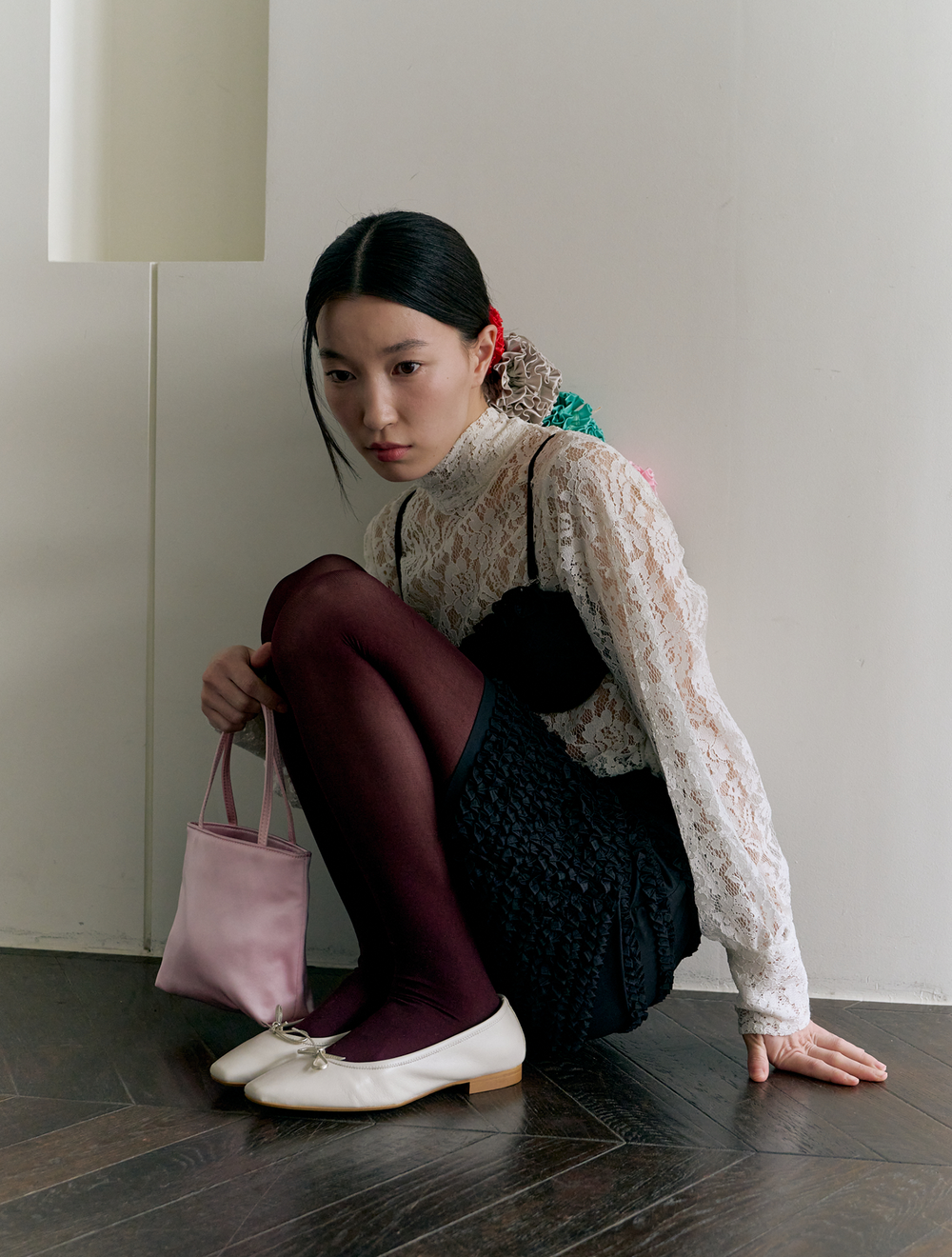 Traviata 모델은 Fetiche 모델의 플랫슈즈 디자인 버젼으로, 앞코가 뾰족하게 디자인된 것이 특징이며 세련된 무드로 착용됩니다.