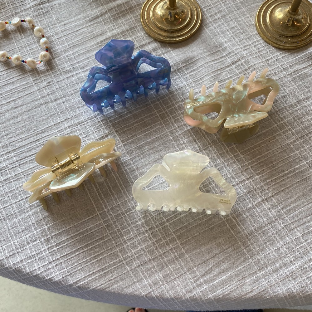 특히 블루컬러는 시원해보이면서 꼭 인어공주같은 느낌이 들어요! 핑크와 화이트는 아름다운 색감으로 고급스럽고 여성스러운 느낌을 준답니다. 매장에서도 인기가 가장 많은 집게핀들입니다.