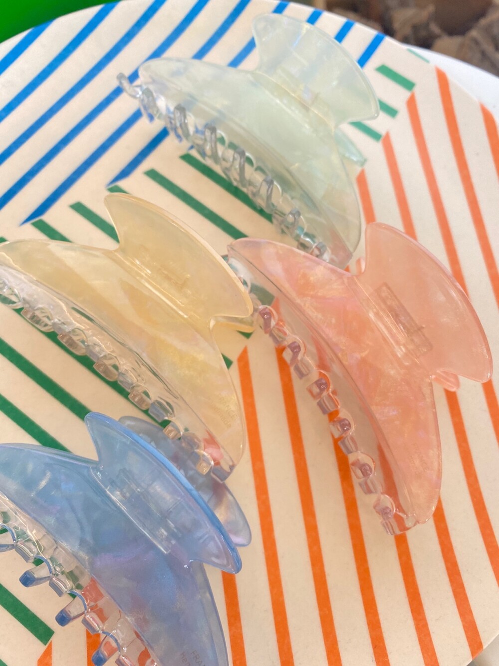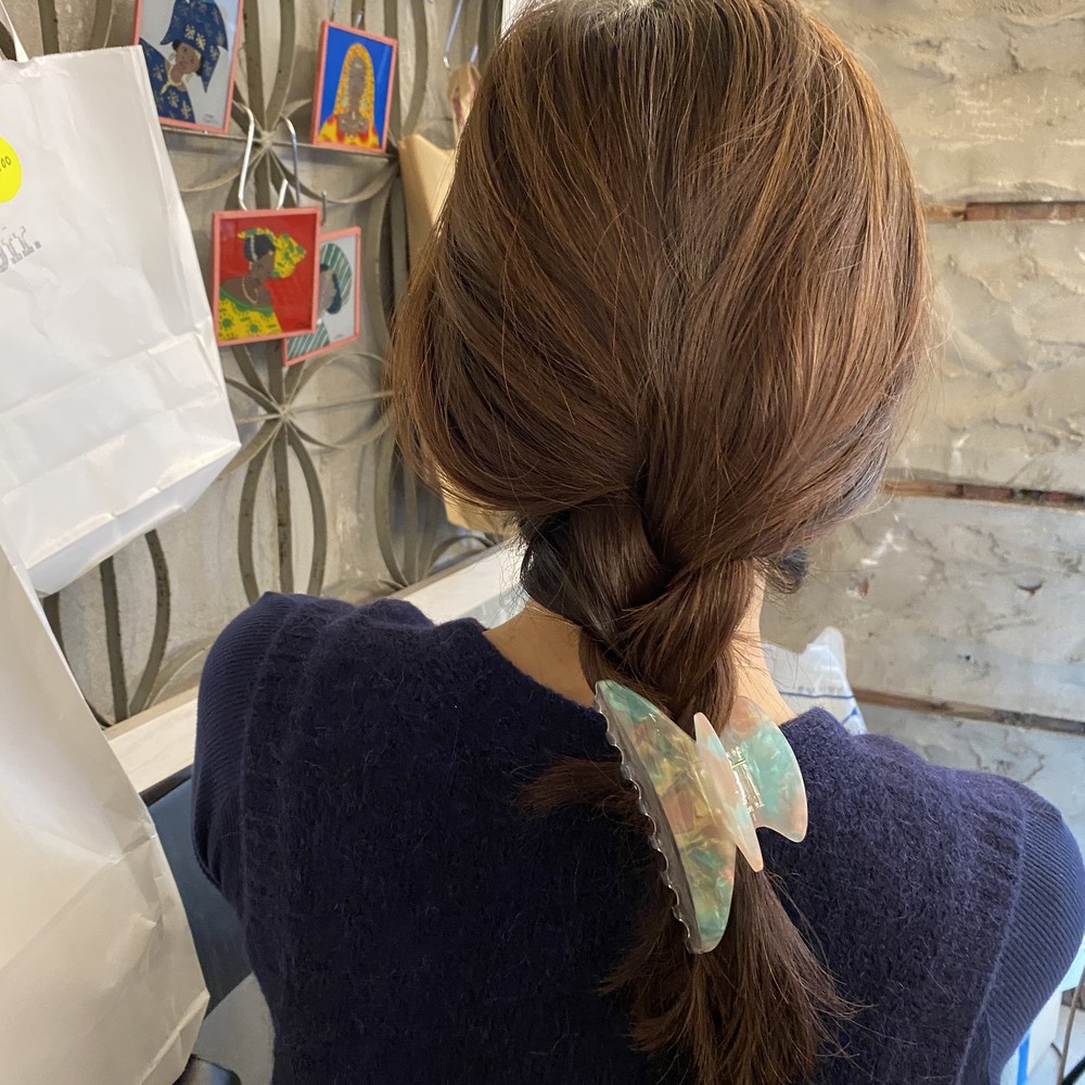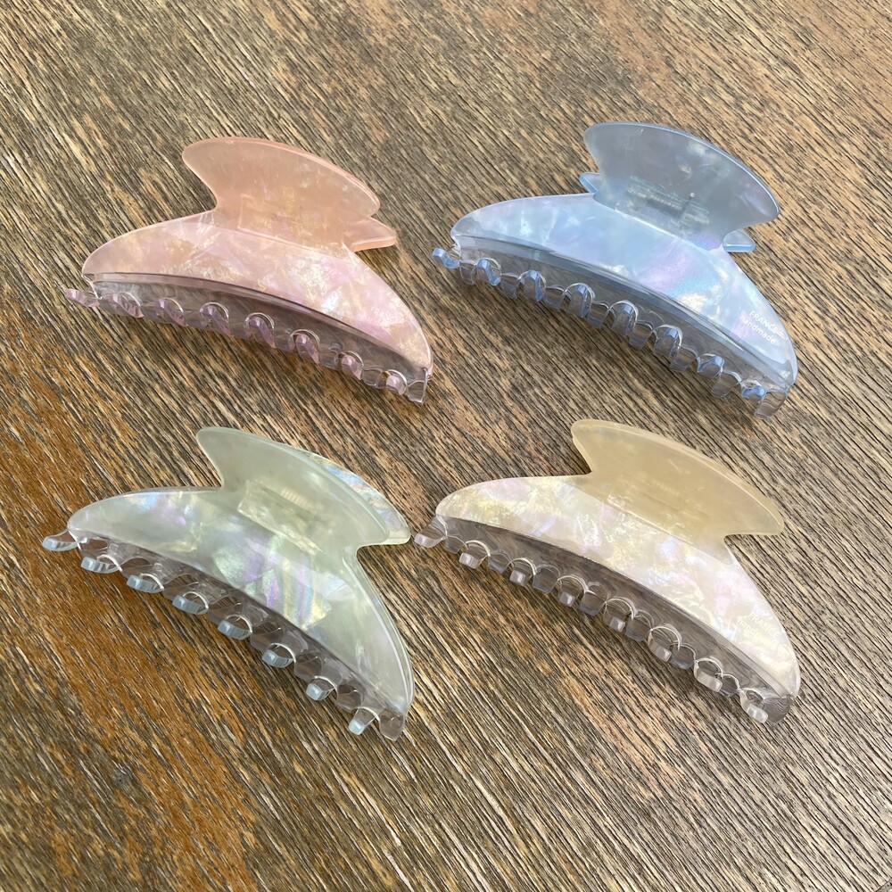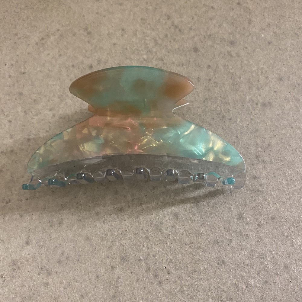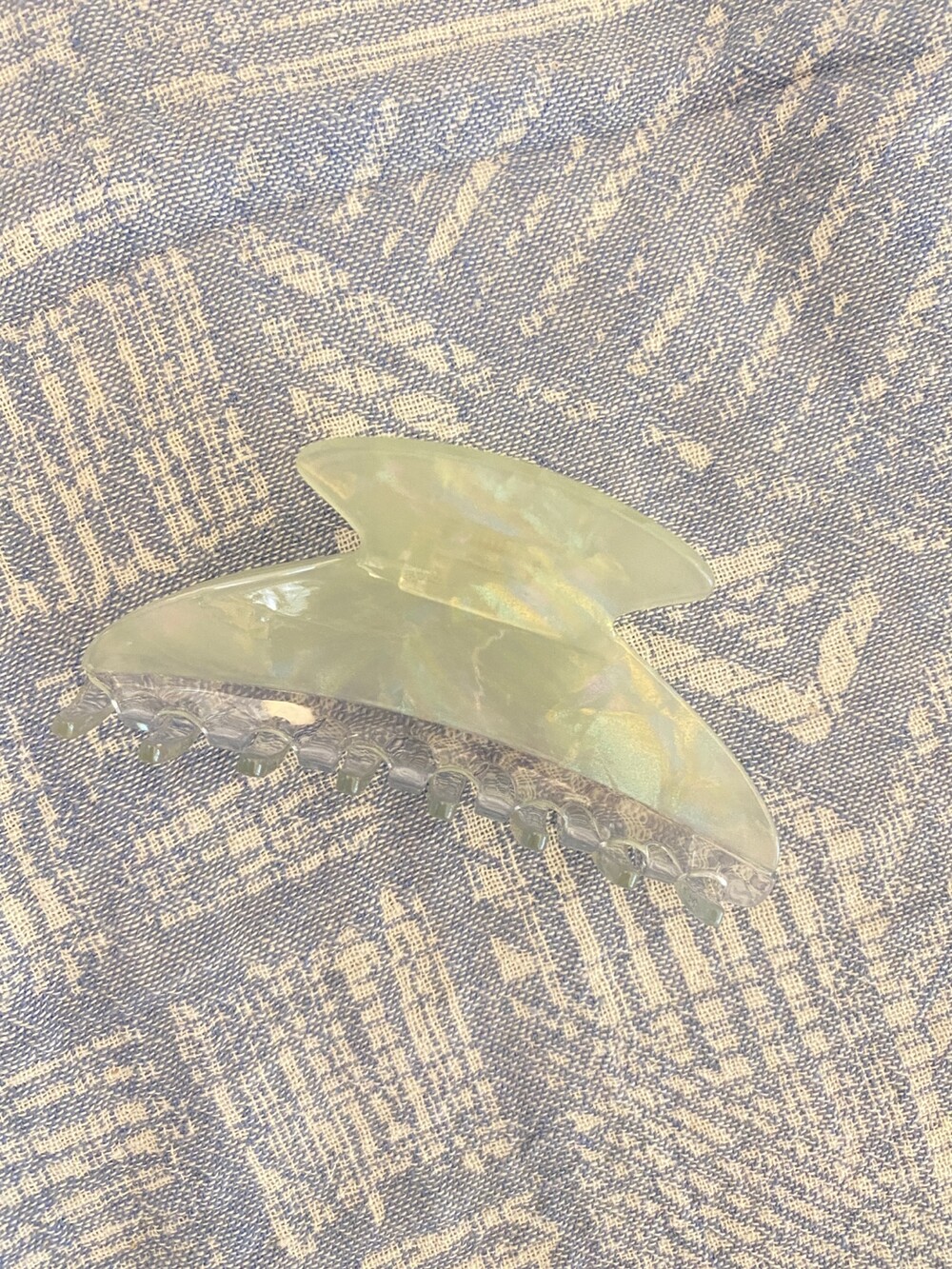 반투명한 재질과 투명 재질이 함께 혼합되어 있으며, 한 가지로 특정지어 부르기 어려운 오묘한 색감이 너무 예쁜 핀입니다. 머리도 굉장히 단단하게 고정을 해주어 편리하게 착용이 가능합니다.