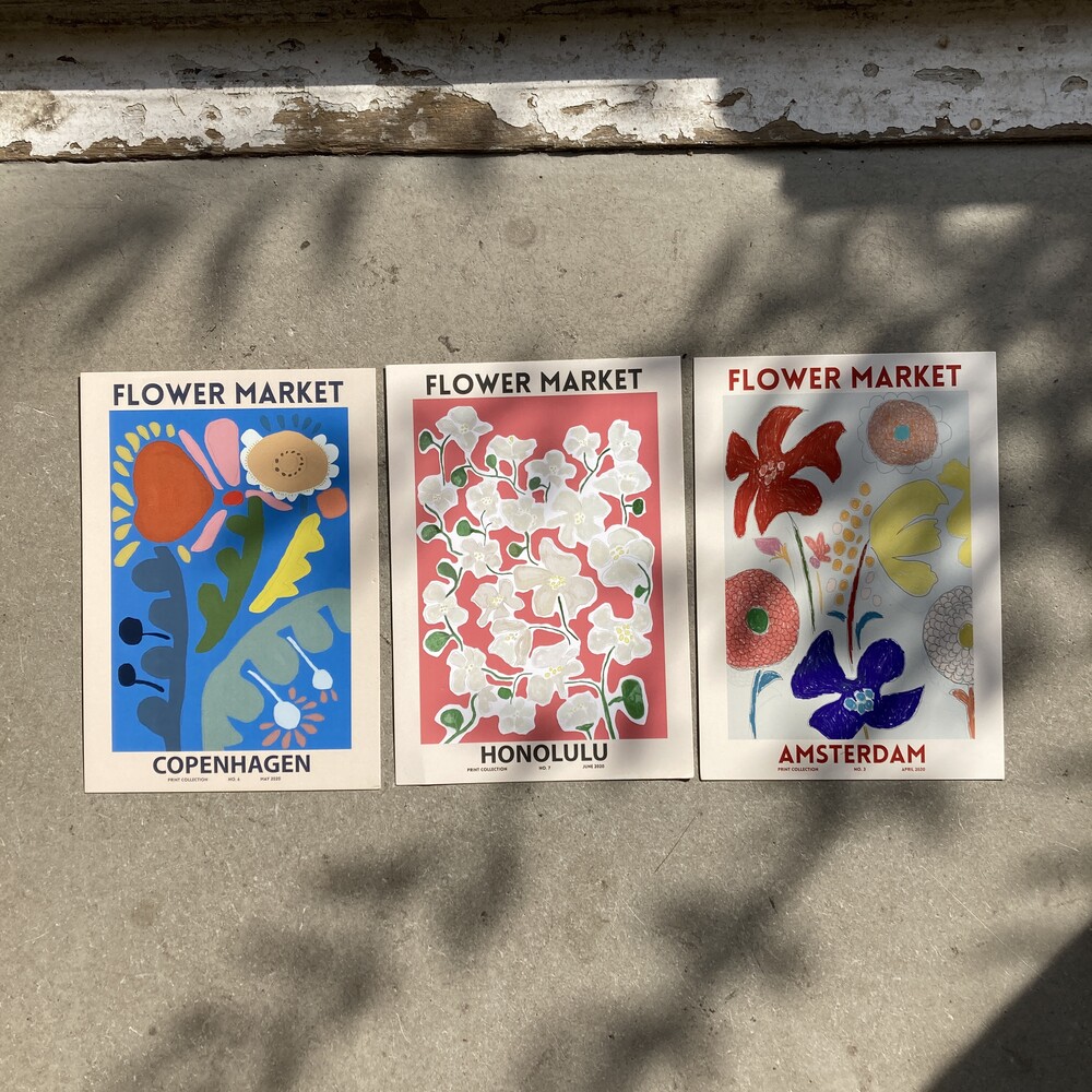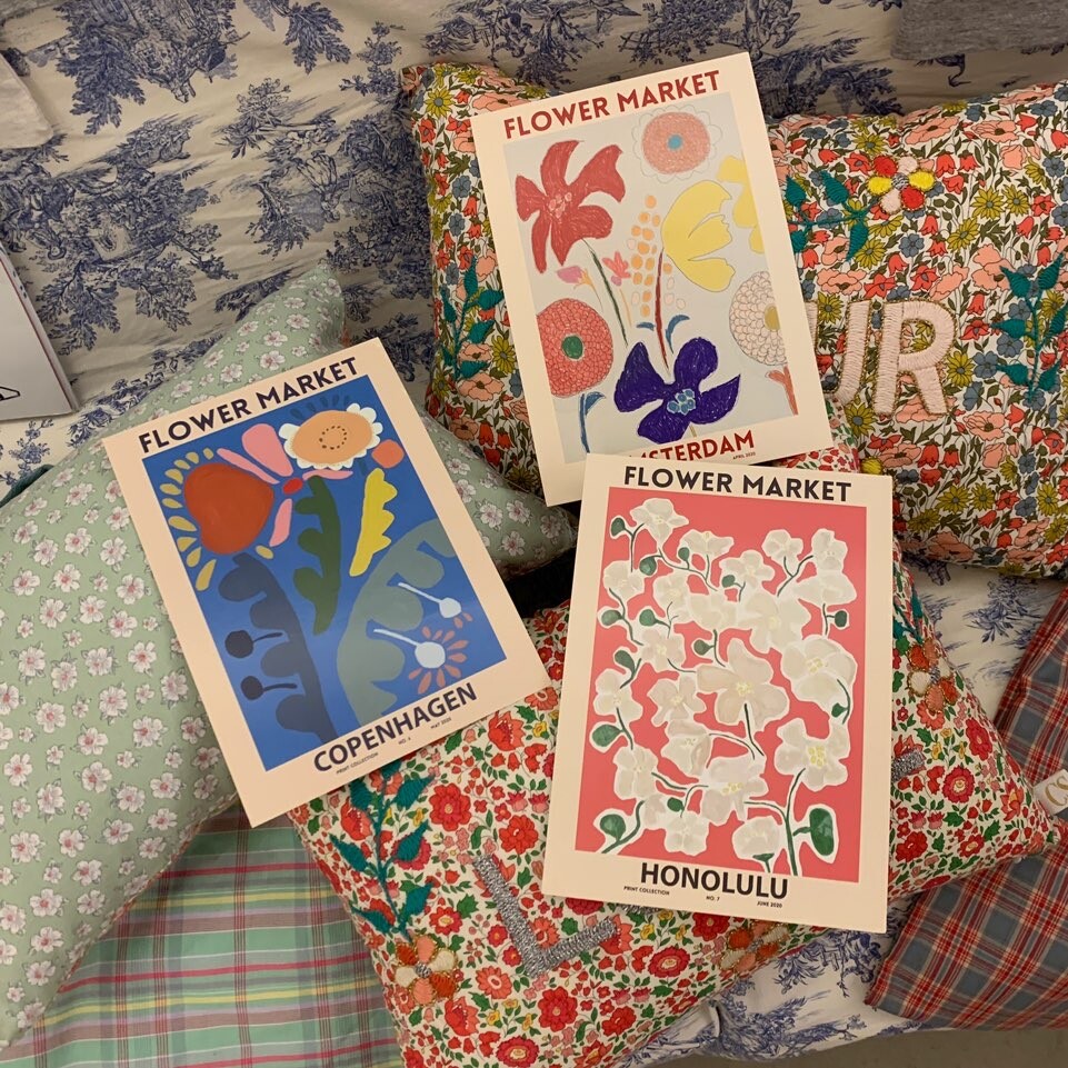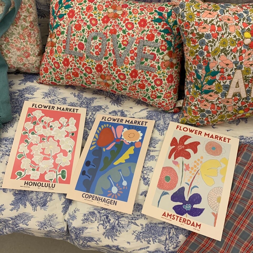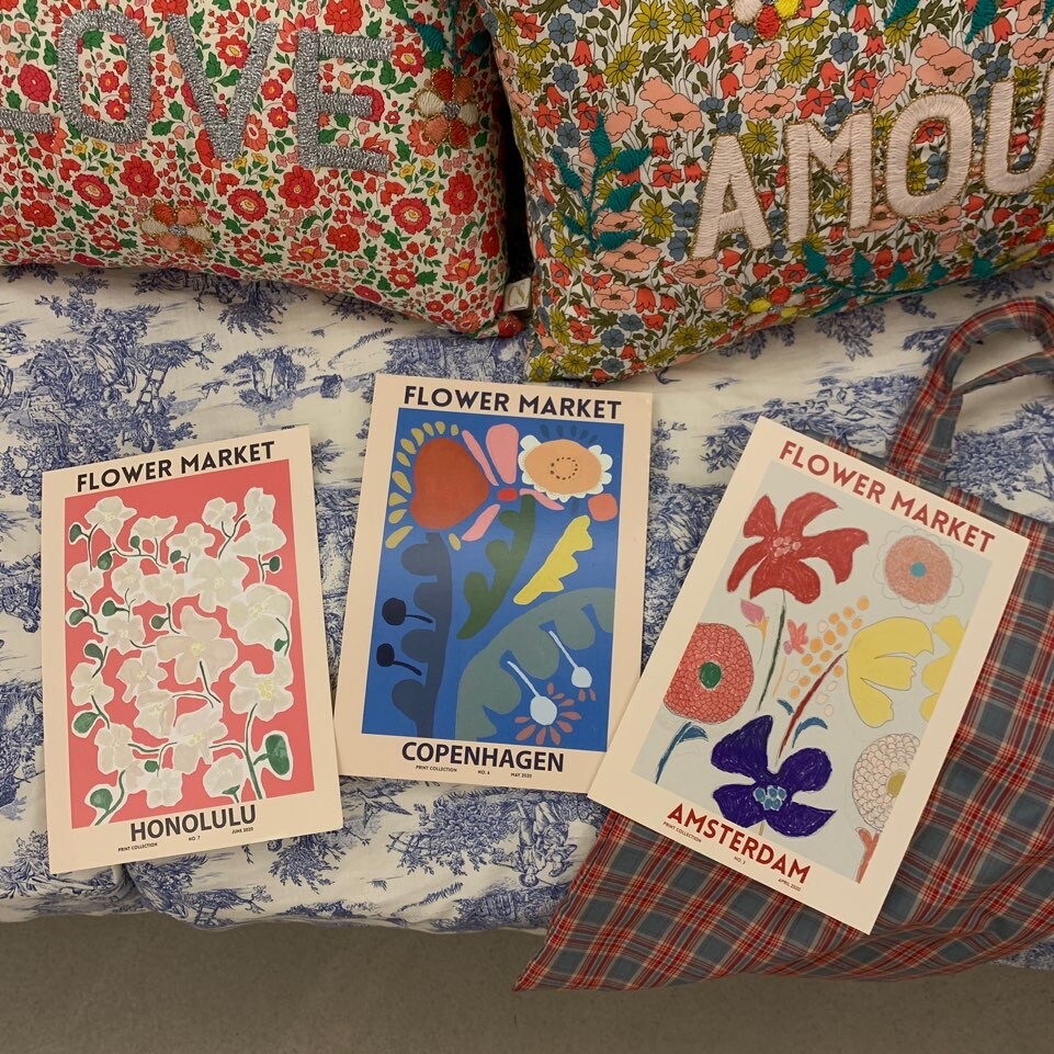 Astrid Wilson작가는 화려한 컬러로 각 나라의 지명과 함께 Flower Market이라는 타이포로 자신만의