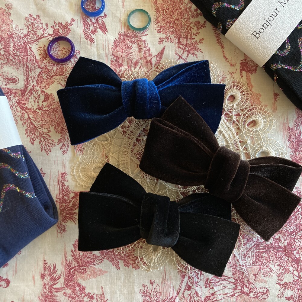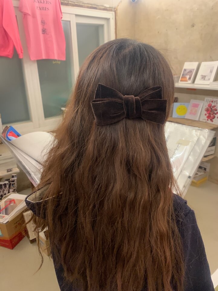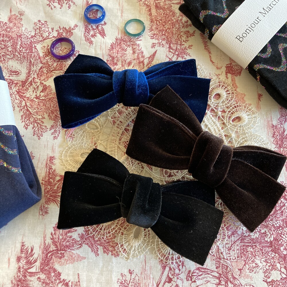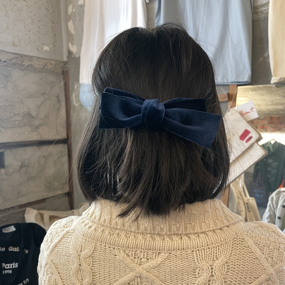 따스한 벨벳 소재에 귀여운 리본 모양이 더해진 디자인으로 핀대의 길이도 10cm 로 넉넉하여 편하게 착용하실 수 있습니다:)