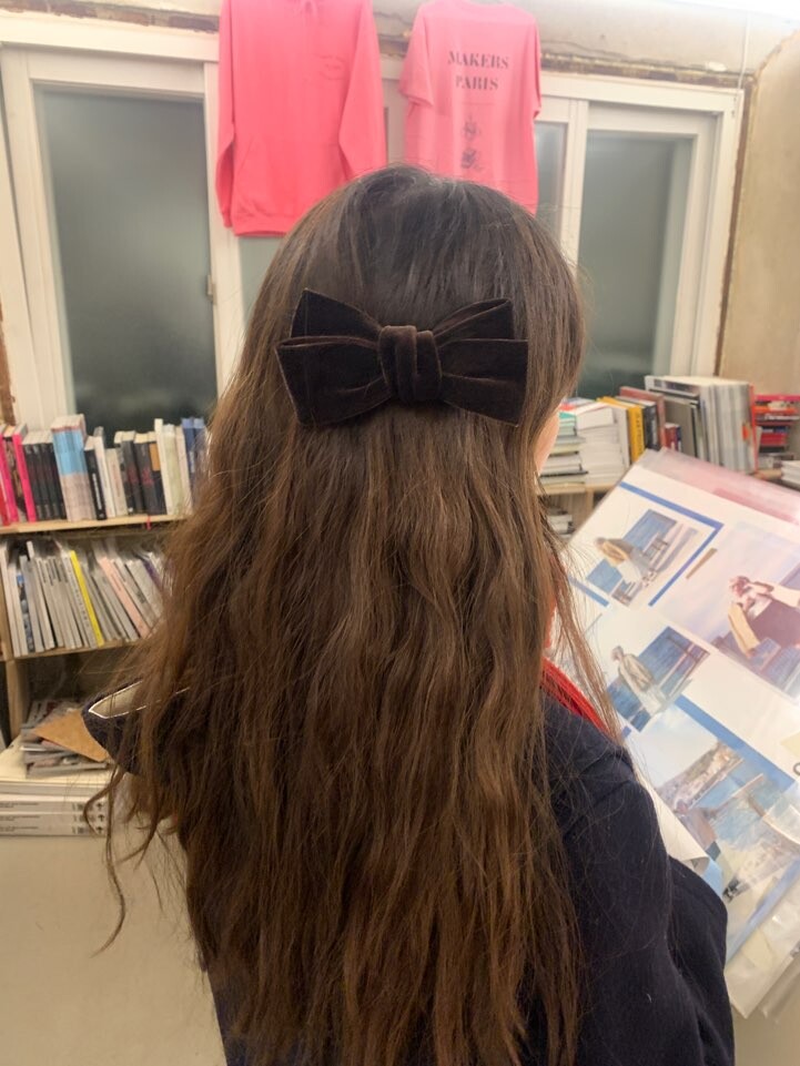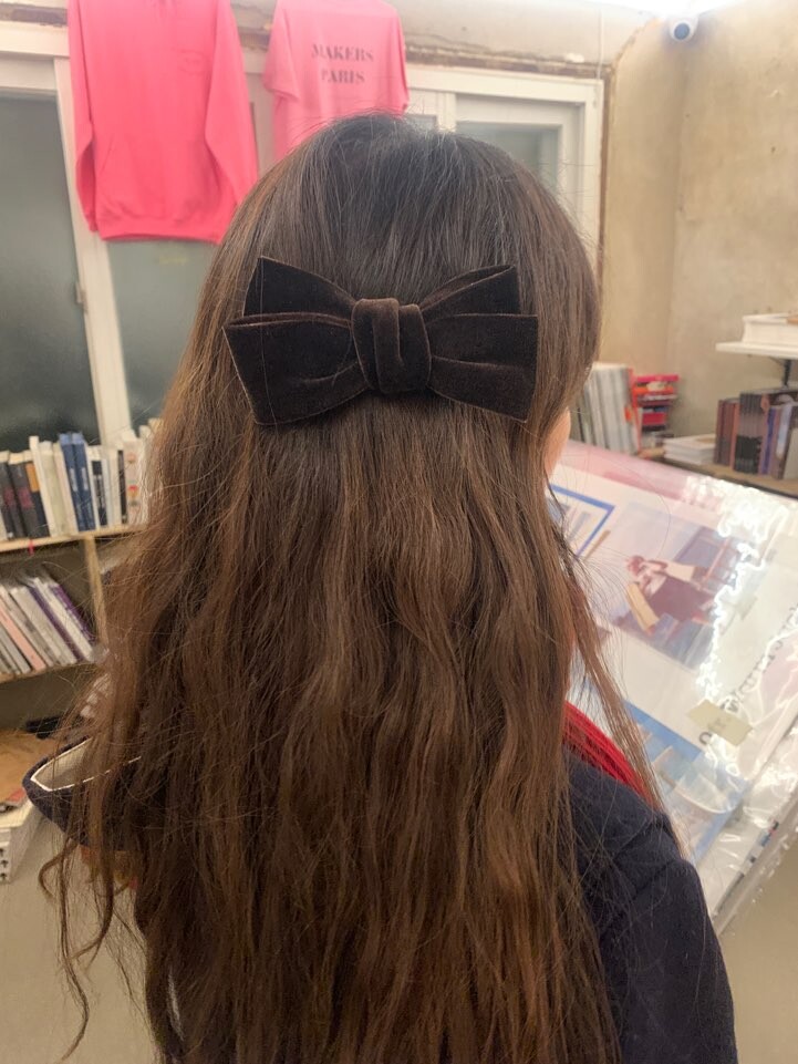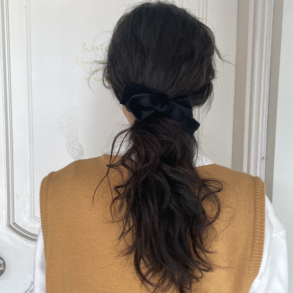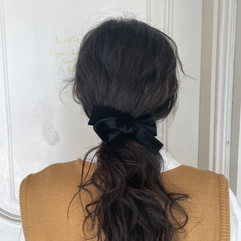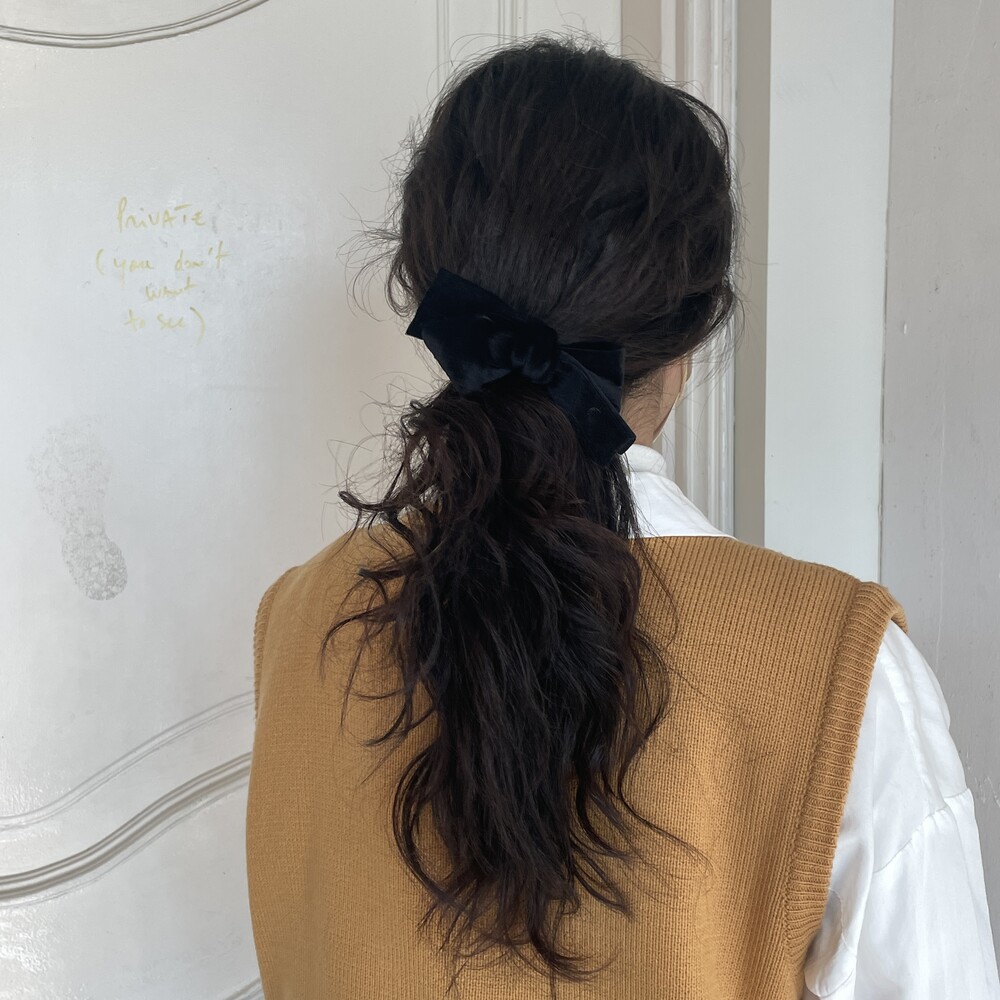 따스한 벨벳 소재에 귀여운 리본 모양이 더해진 디자인으로 핀대의 길이도 10cm 로 넉넉하여 편하게 착용하실 수 있습니다:)