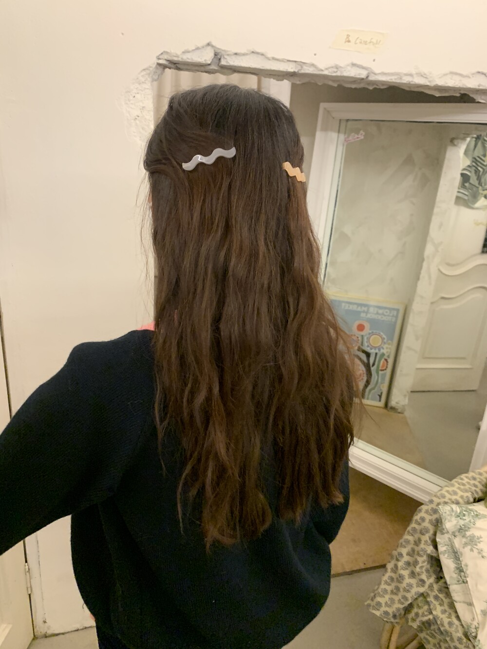 또한 클립의 길이도 꽤 긴 편이라 고정되는 머리의 양도 상당하여 유용하게 사용할 수 있는 핀입니다:)