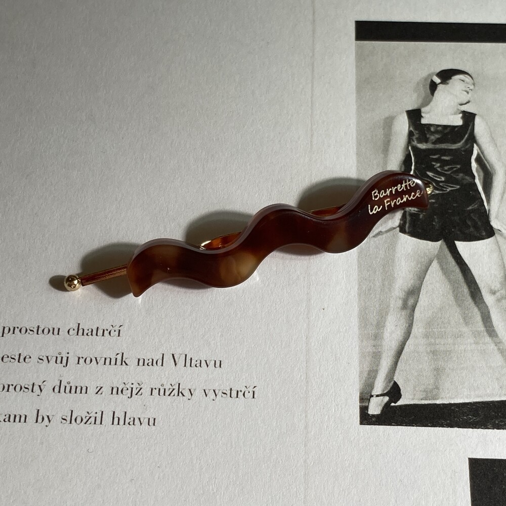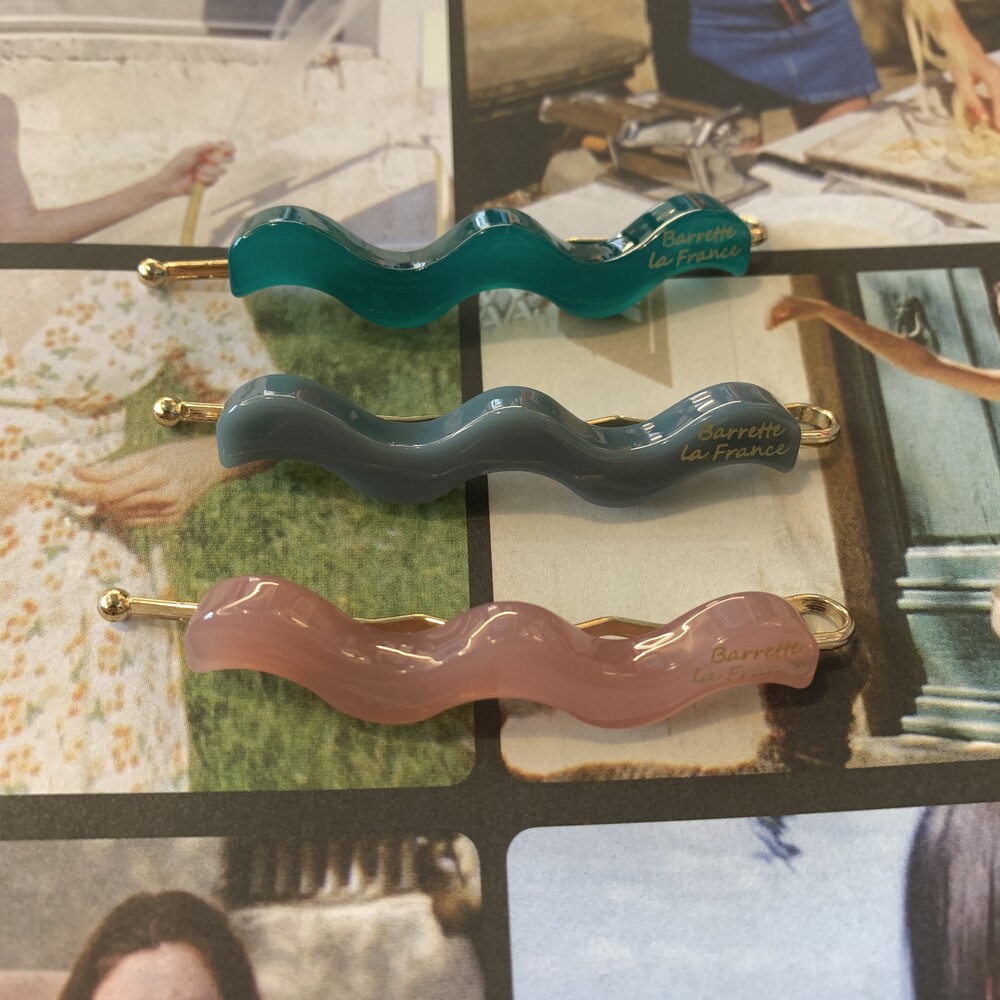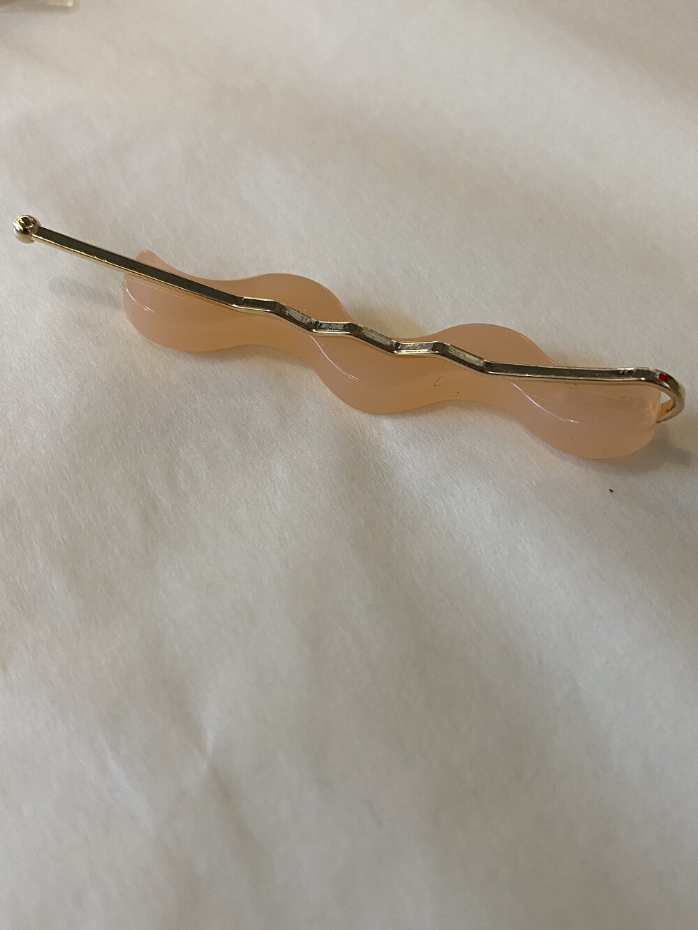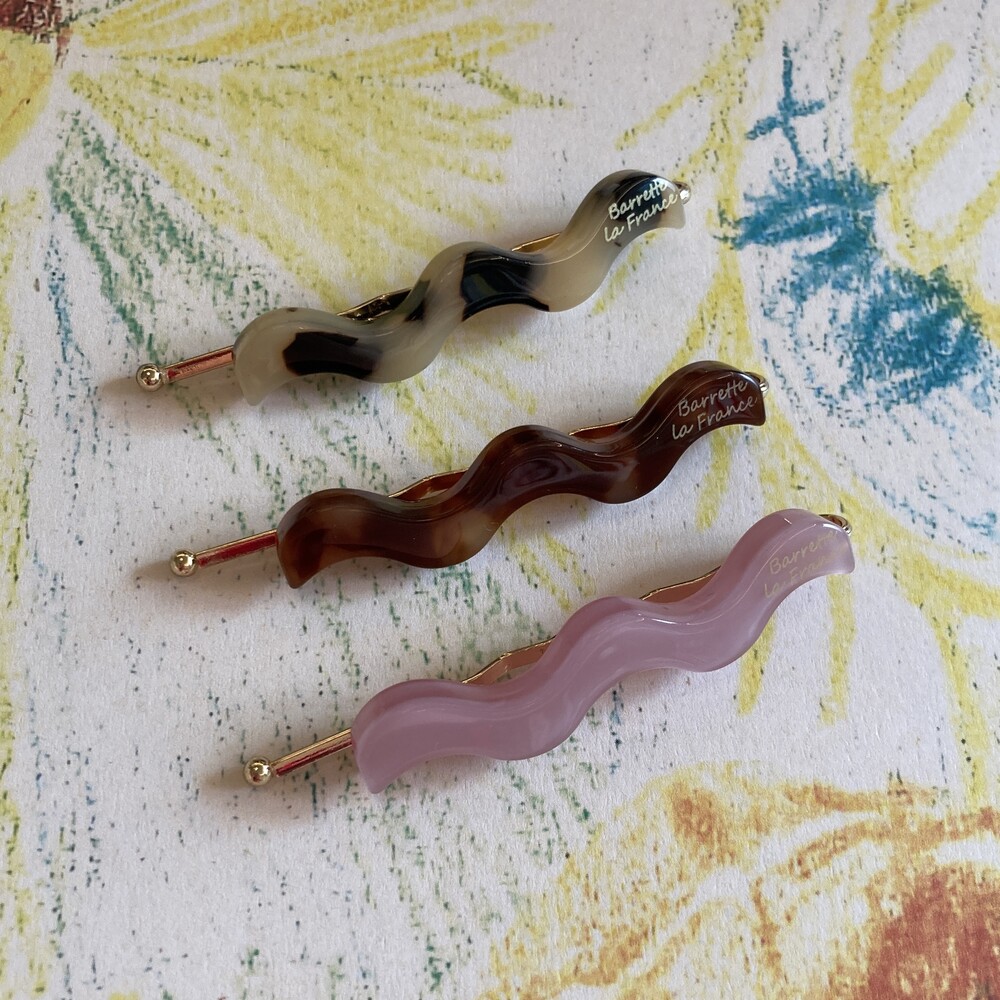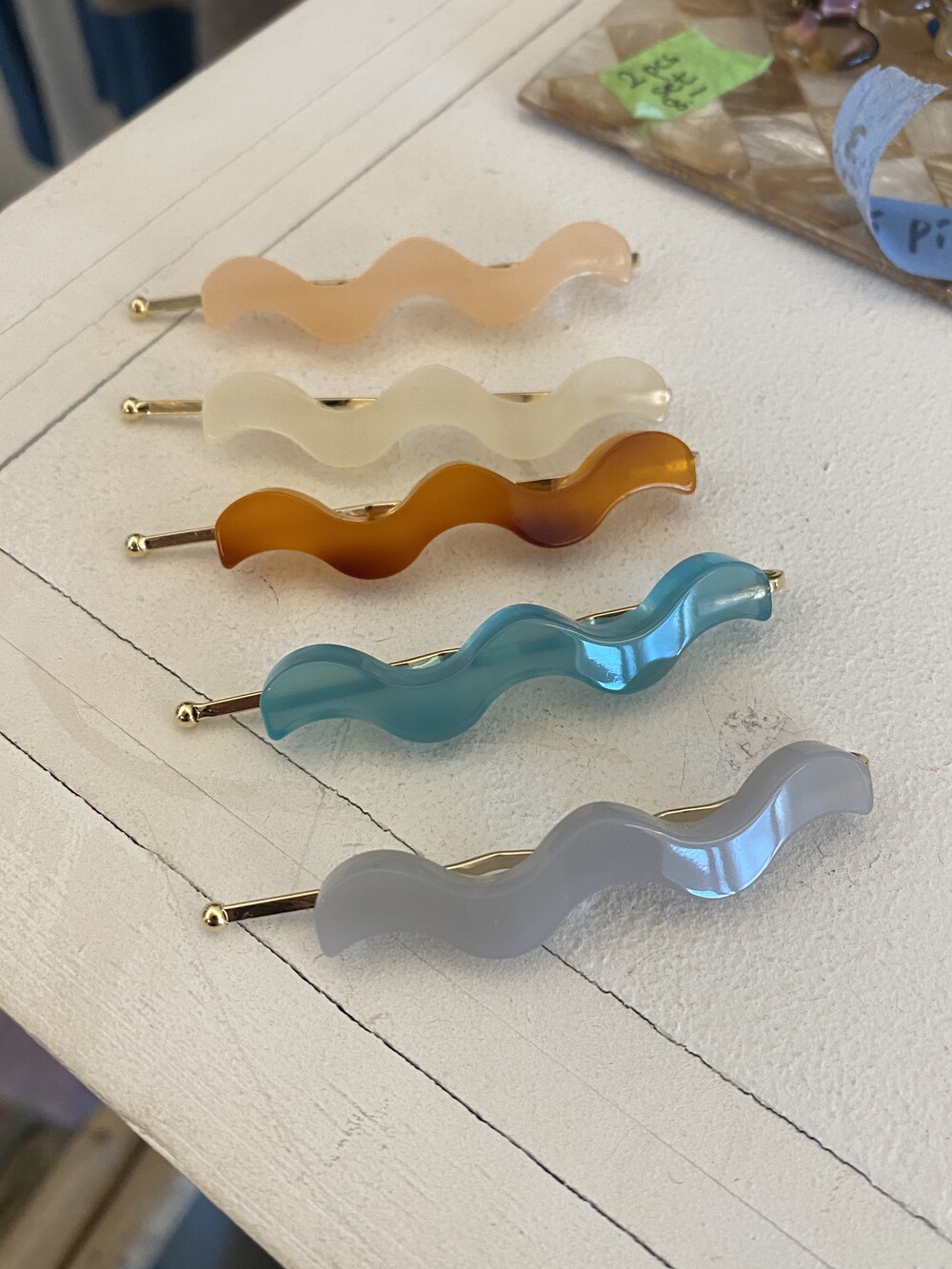 구불구불한 형태가 귀여운 느낌을 주는 클립 형태의 핀입니다.