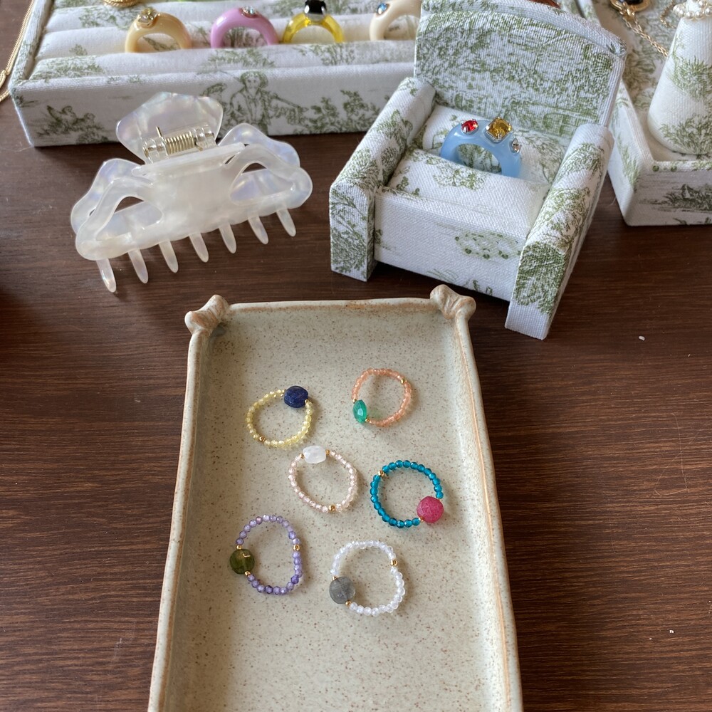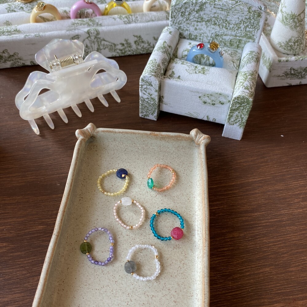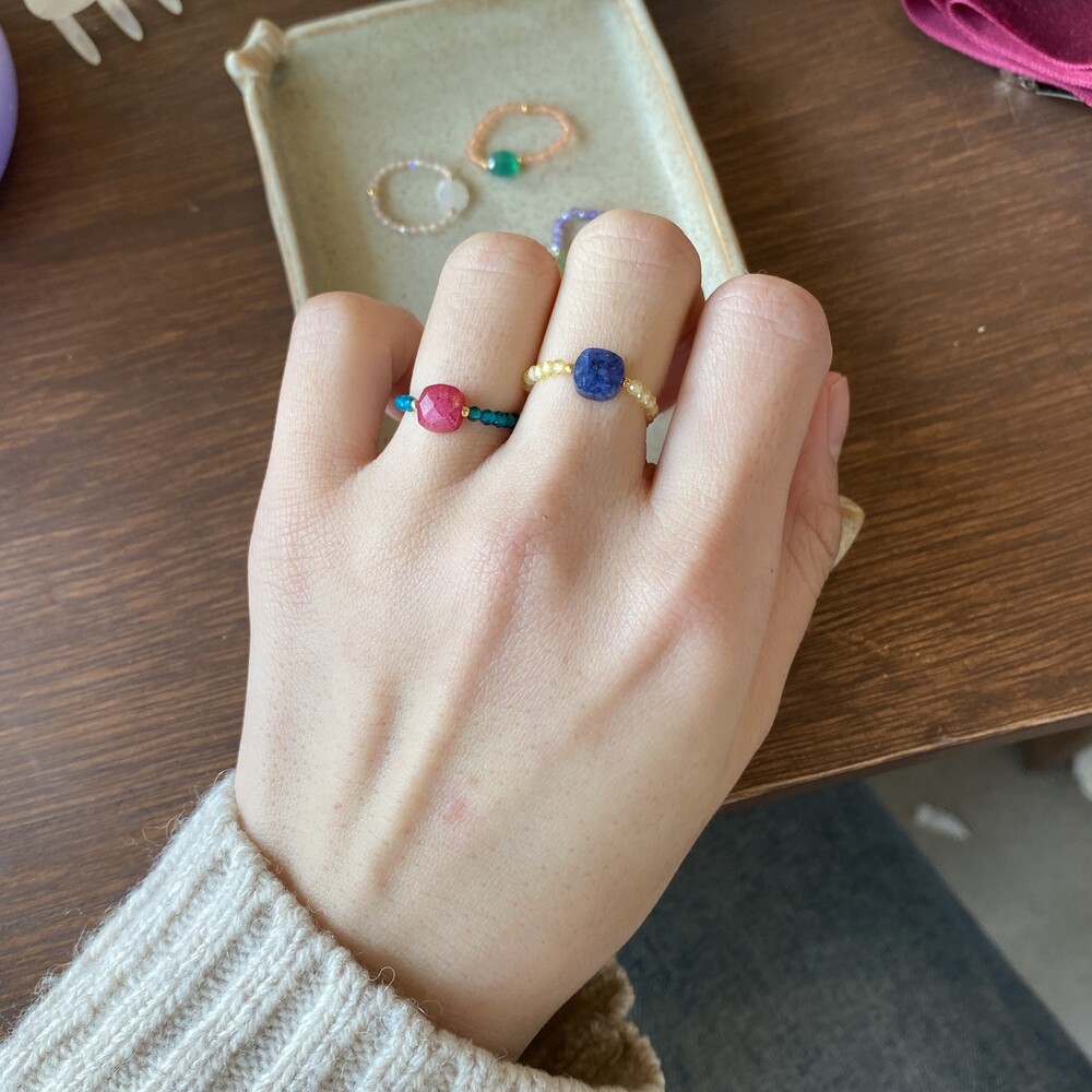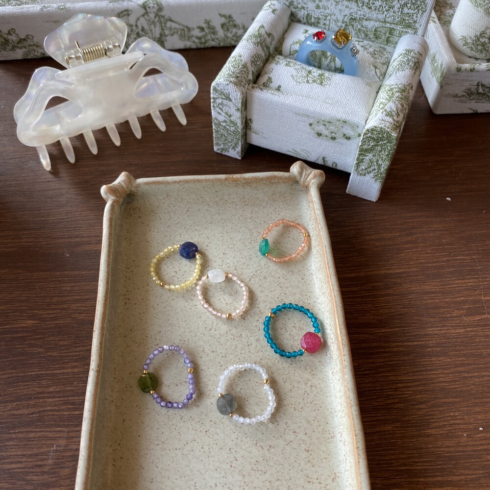 가벼우면서도 레이어드 하기에도 부담없는 귀여운 반지들입니다. 원석 특성상 같은 컬러 안에서도 조금씩 색상차이가 있을 수 있으며 참고부탁드립니다.