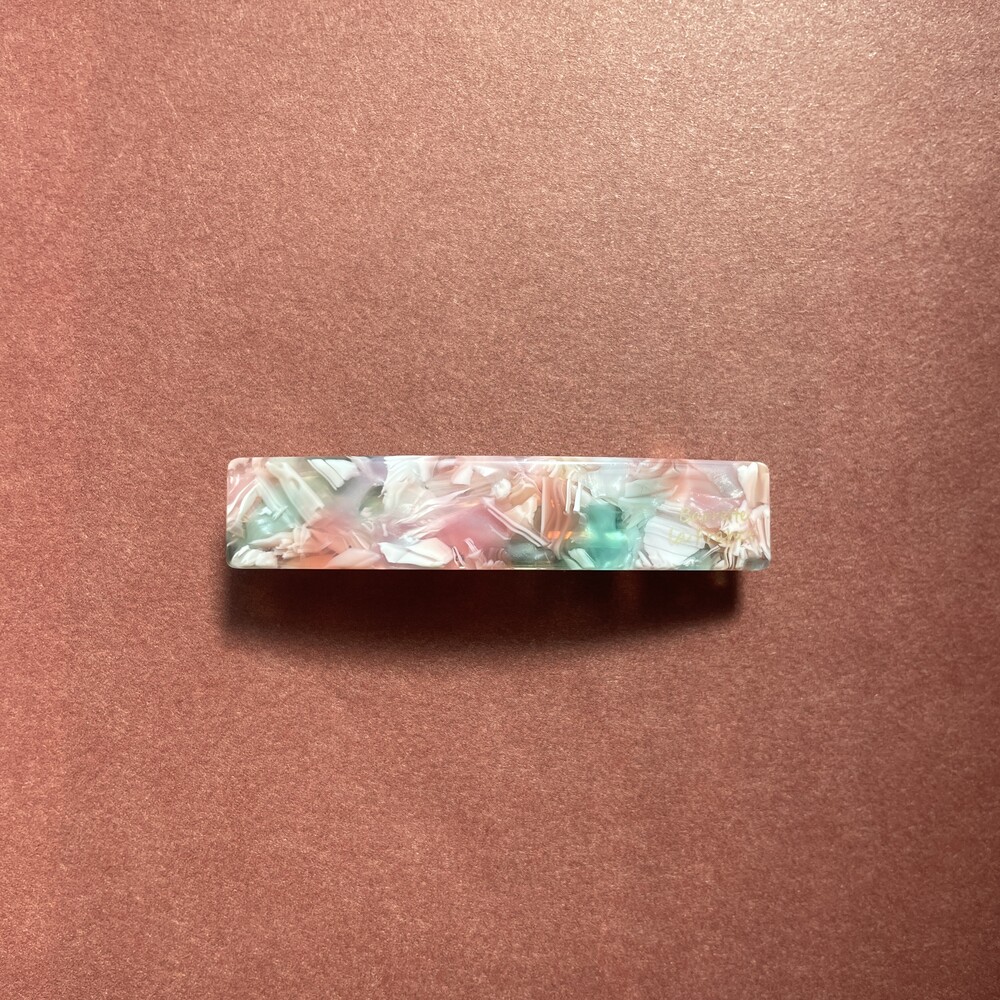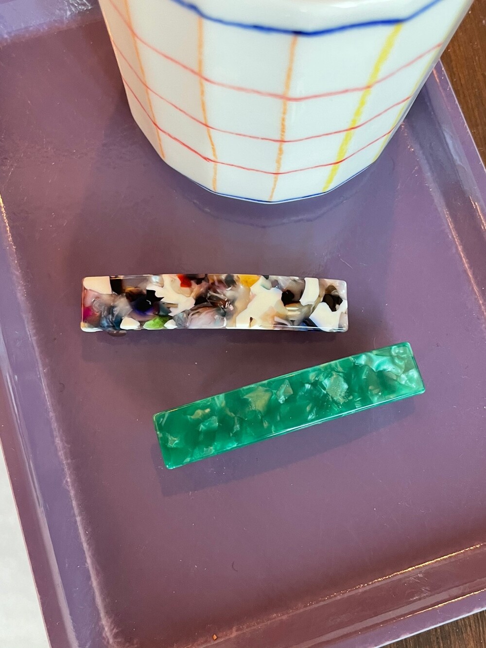 똑딱핀 형태이며 알록달록한 컬러가 섞인 여섯 가지 다양한 컬러로 만나보세요!