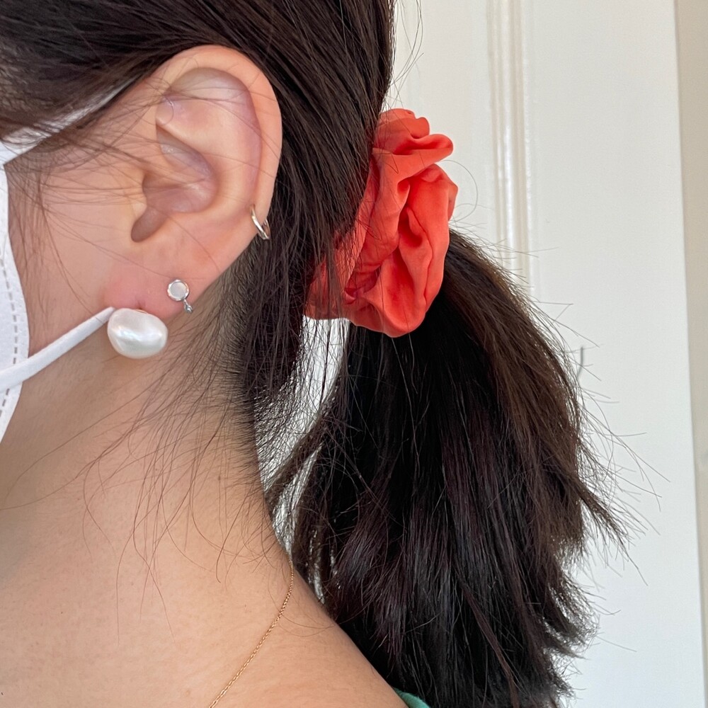 진주의 크기가 불규칙하며, 다소 울퉁불퉁한 형태감으로 이 점이 매력적인 귀걸이입니다. :)