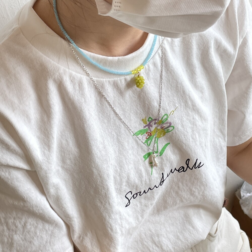 파스텔톤의 매트한 비즈 넥크리스로 제작되어 티셔츠에 포인트로 착용하시기 좋은 아이템입니다.