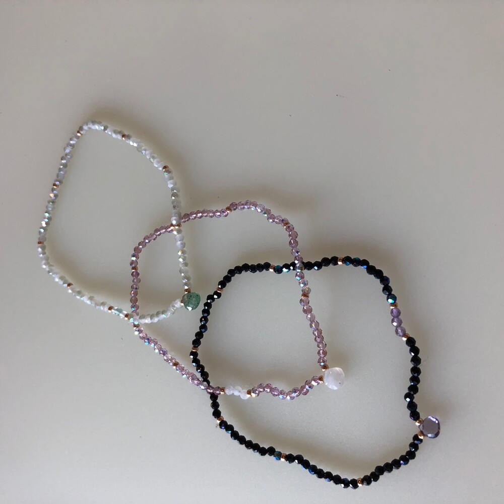 컬러는 세가지이며 투명하고 반짝반짝한 비즈로 이루어진 아이템입니다.