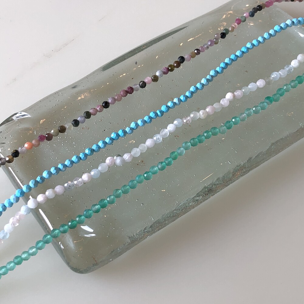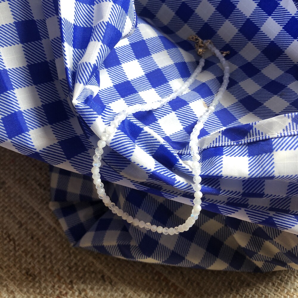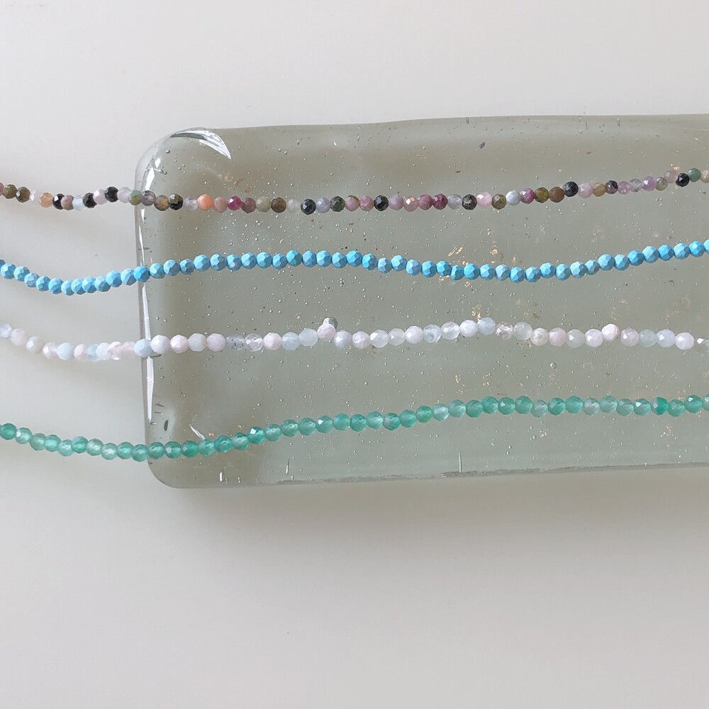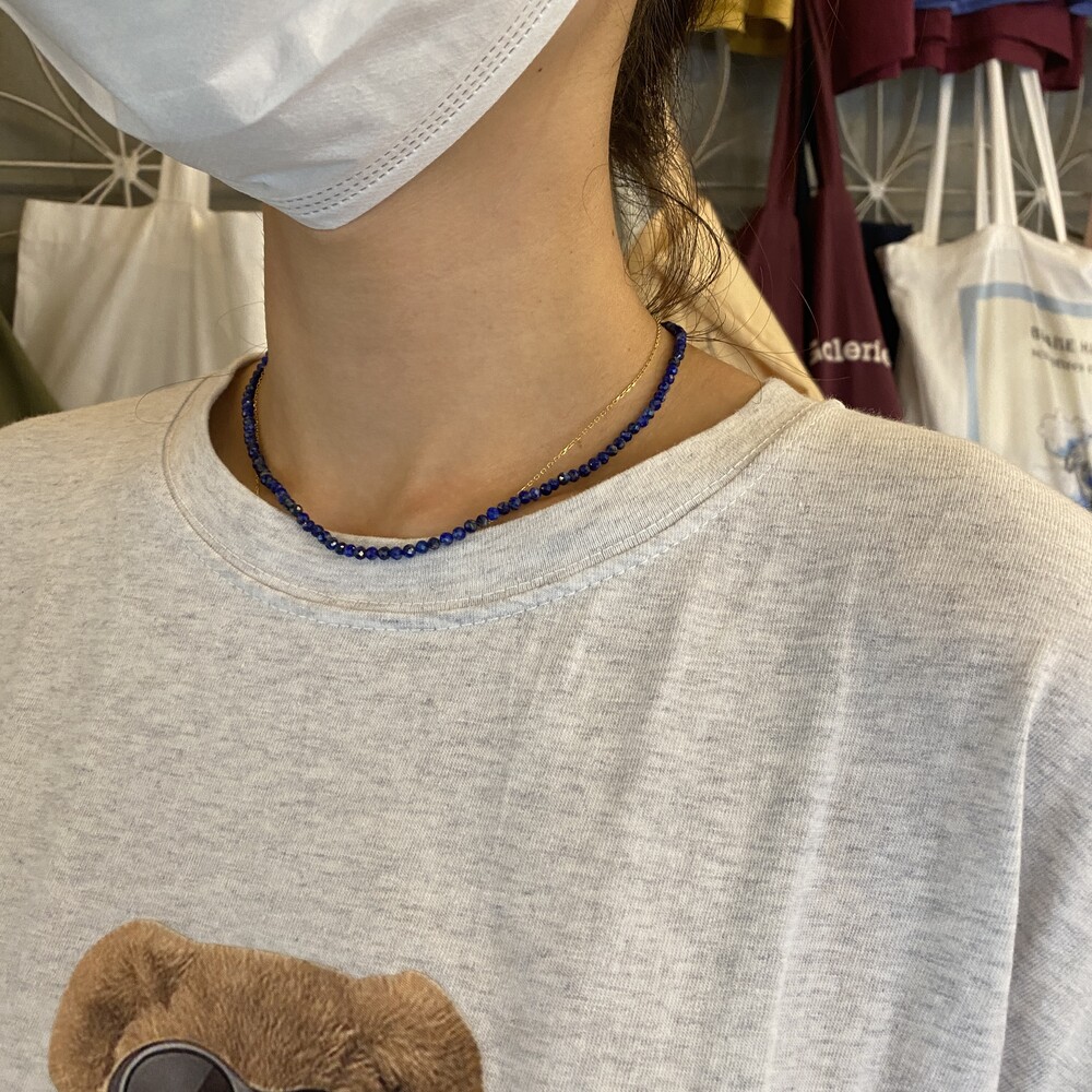 청량한 느낌의 화이트 잼스톤과 블루톤에 은은한 펄이 겉도는 젬스톤 목걸이들 입니다.
