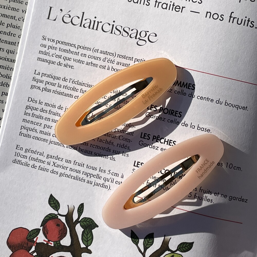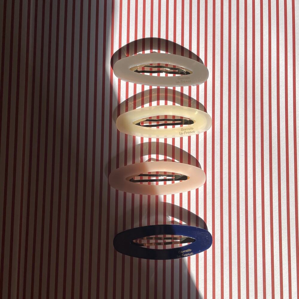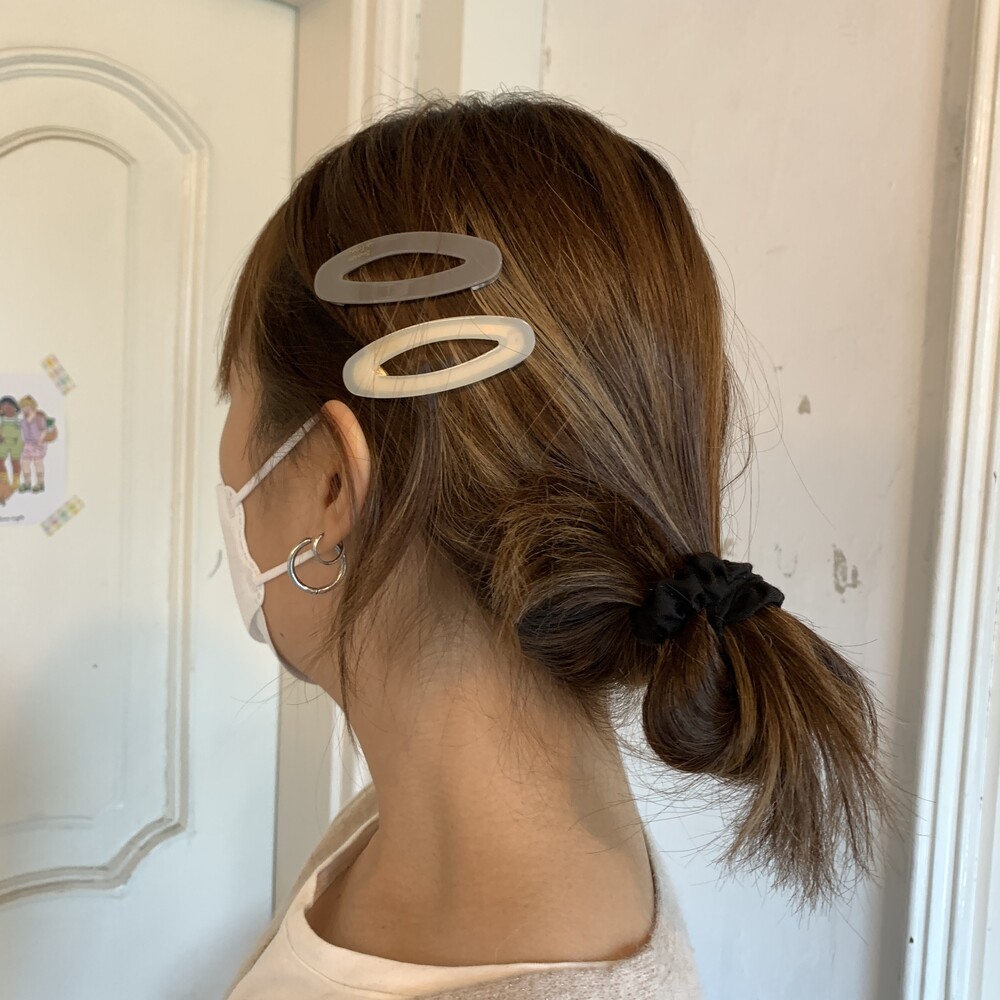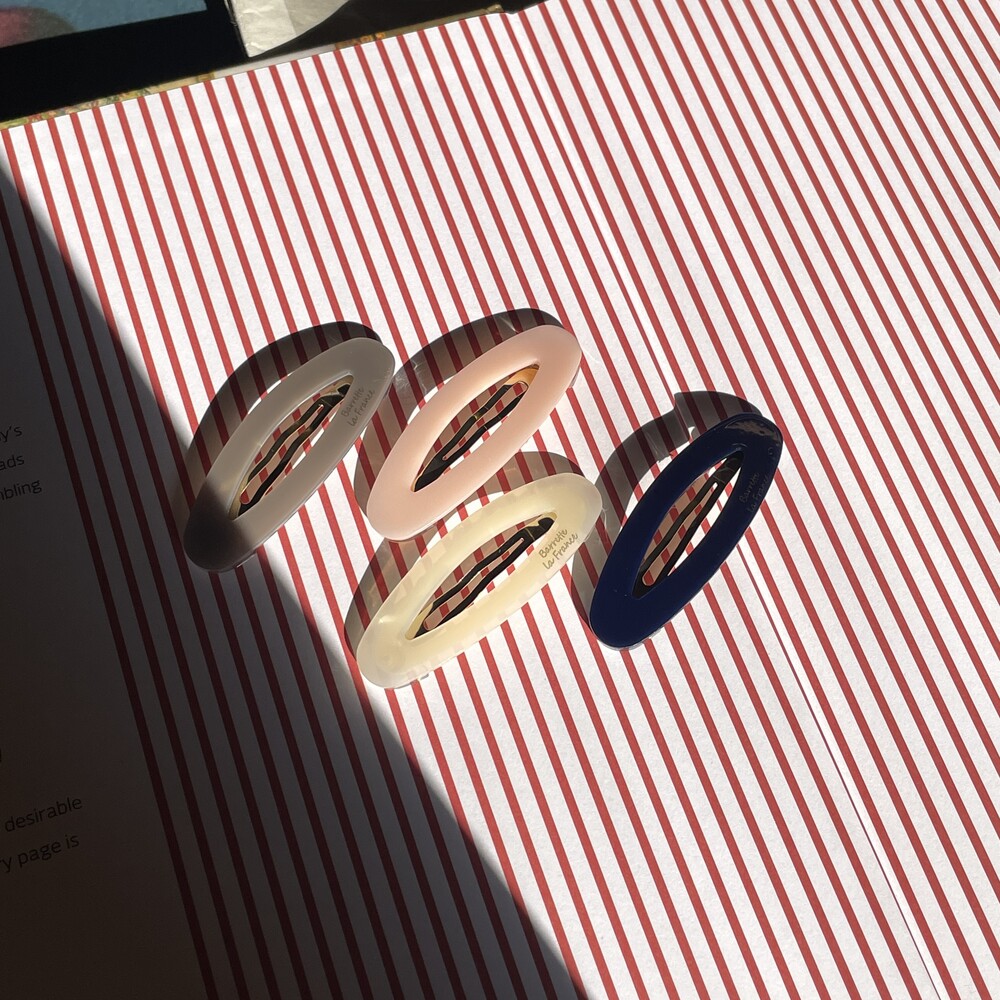 타원형 모양의 귀여운 셰잎이며 고정핀은 똑딱핀 형태로 어릴적 많이 하던 똑딱핀처럼 옆머리나 뒷머리 고정에 용이합니다. 옆머리나 뒷머리를 고정하기에 용이하며 특히나 쨍한 빨간색 컬러가 영화 아멜리에를 떠오르게 해요.