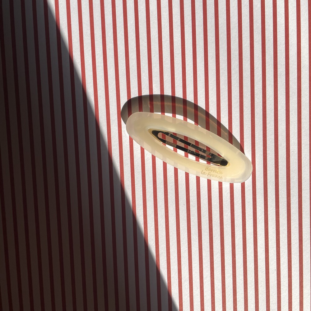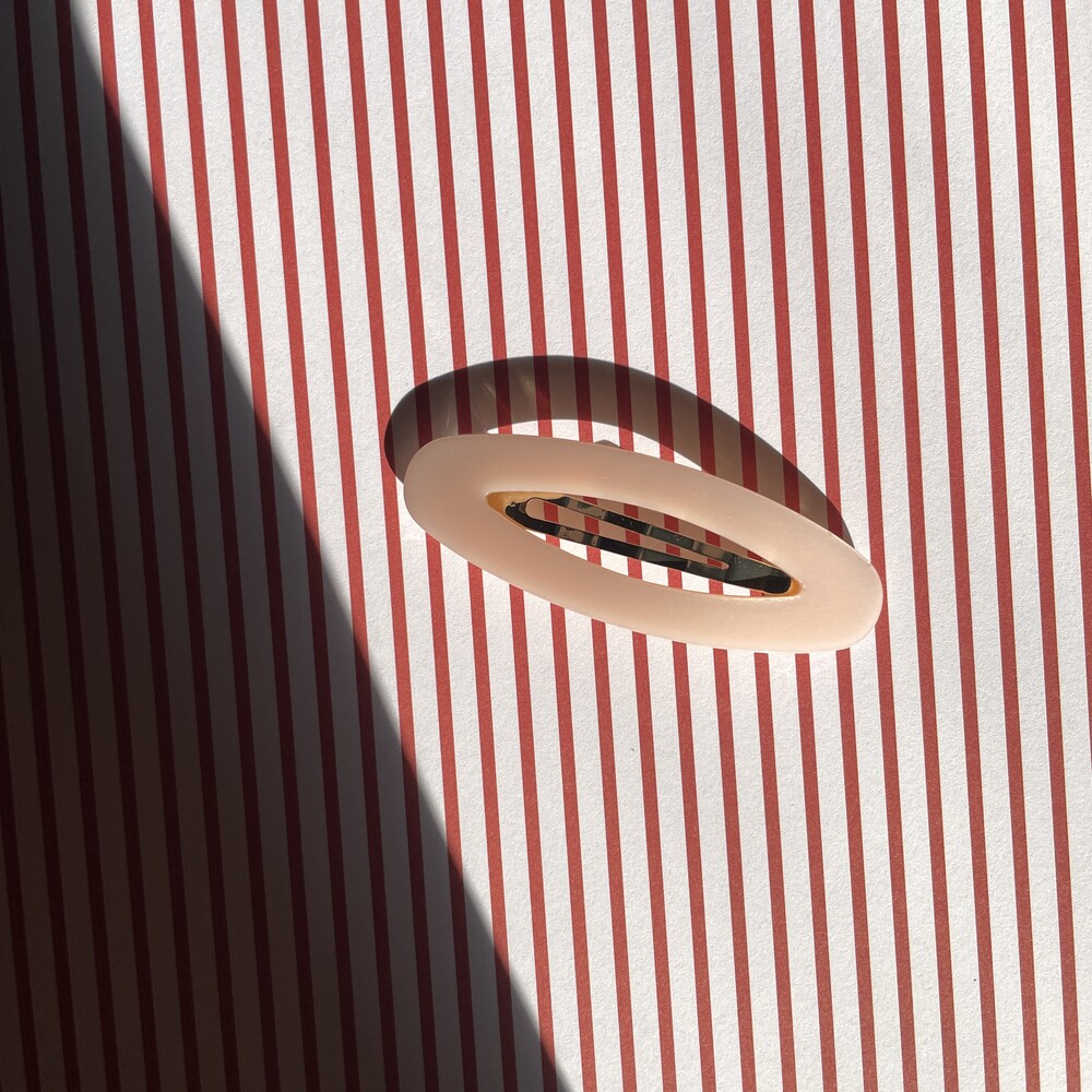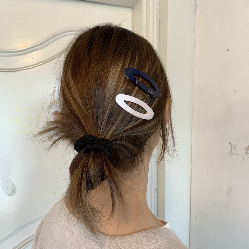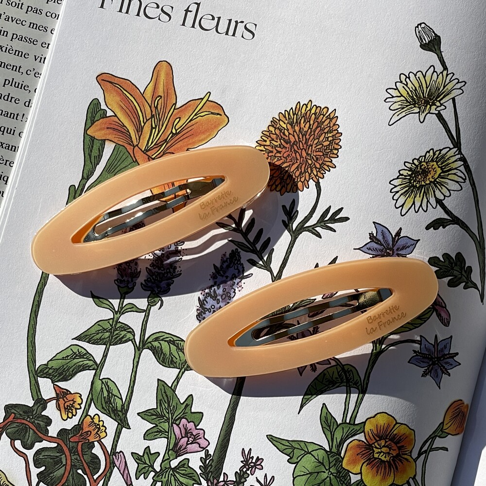 타원형 모양의 귀여운 셰잎이며 고정핀은 똑딱핀 형태로 어릴적 많이 하던 똑딱핀처럼 옆머리나 뒷머리 고정에 용이합니다. 옆머리나 뒷머리를 고정하기에 용이하며 특히나 쨍한 빨간색 컬러가 영화 아멜리에를 떠오르게 해요.