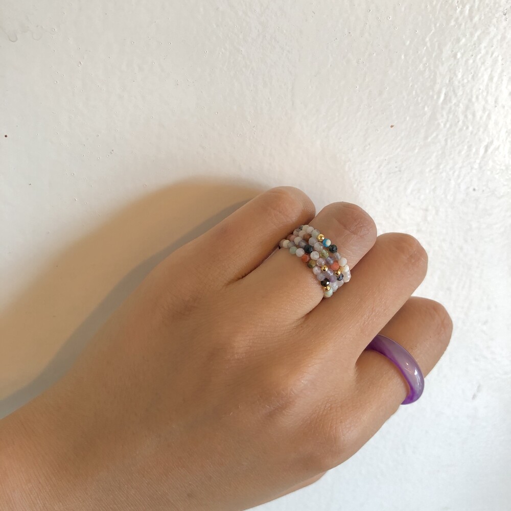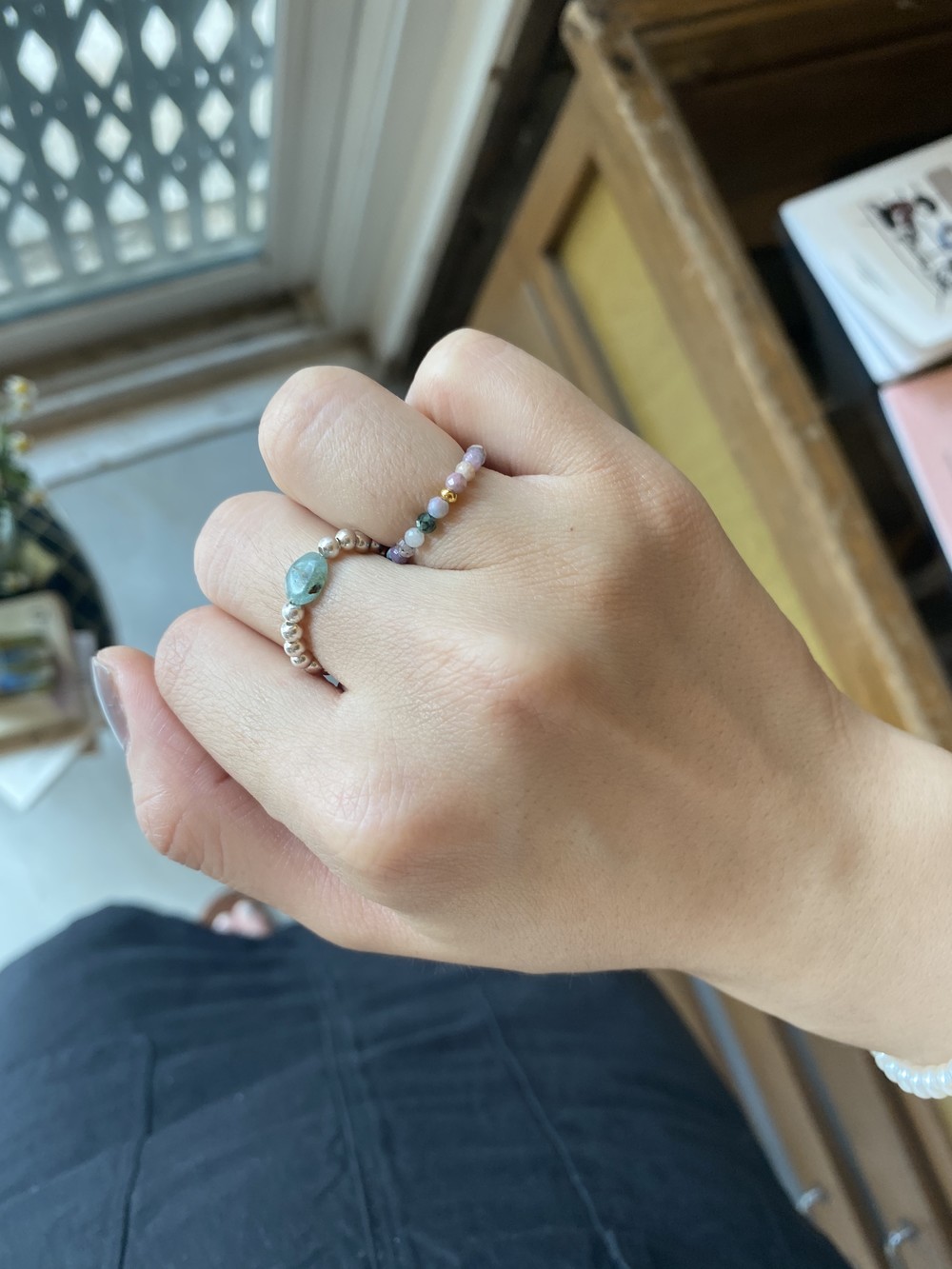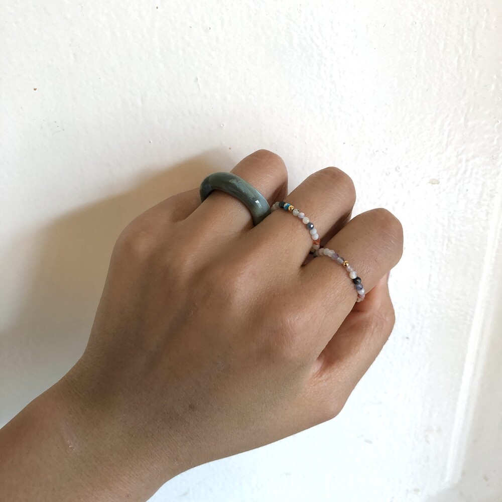 색들도 오묘하고 완벽한 솔리드컬러라기보다는 은은한 색감의 영롱한 원석 반지에요.