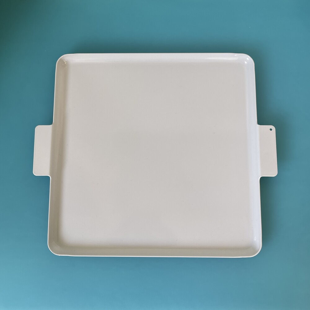 가볍게 사용할 수 있는 알루미늄 트레이의 새로운 버전, 알루미늄 트레이 스퀘어 타입입니다. 직선적인 형태에 직각으로 올라오는 가장자리, 양쪽에 달린 손잡이 모두 군더더기 없이 심플한 느낌을 줍니다.